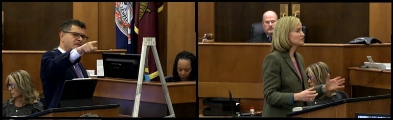 Joseph Fried, left, and Ashley Winsky deliver their opening statements at trial against a trucking company and its driver over the death of a Virginia teenager. Watch the trial.