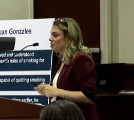 Jones Day's Jennifer Weizenecker delivers closing arguments for R.J. Reynolds at trial over the throat cancer that killed a New Mexico man who had smoked the company's cigarettes for decades. Jurors ultimately cleared the tobacco company of responsibility. Watch the trial.