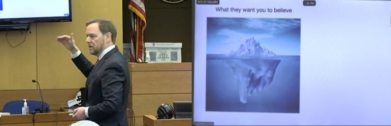 Lloyd Bell delivers his closing argument in the liability phase of a medical malpractice trial against a dermatologist for the skin cancer that disfigured a Georgia man. Jurors ultimately found the physician liable and handed down a $48 million verdict. Watch the trial.
