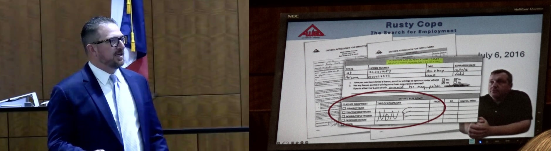 Joseph Fried, left, and Ashley Winsky deliver their opening statements at trial against a trucking company and its driver over the death of a Virginia teenager. Watch the trial.